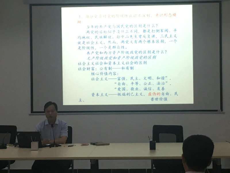 6月29日下午,公路学院党总支 “重温入党志愿” “两学一做”学习教育在公路学院三楼会议室举行。公路学院党总支书记袁超主持会议,教工党支部、学生党支部全体党员师生参加。 会上,教工党支部书记王轩为全体教工党员上党课,他结合自身学习情况,谈了“两学一做”的重要意义,带领大家深入学习了《中国共产党章程》、《习近平总书记系列重要讲话读本》,讲课过程中牢牢把握学党章党规、学系列讲话是基础,做合格党员是关键这条主线,重点引导党员自觉按照党员标准规范言行。 公路学院党总支书记袁超同志结合“两学一做”学习教育的目标即“四个进一步”角度阐述了教工党员及学生党员如何立足本职起到先锋模范作用。并激励大家希望教师党员要争当“四有”好老师,学生党员要真正做到“一个党员带动一个宿舍,一个宿舍带动一个班级,一个班级带动一个学生整体”。讲解深入浅出,通俗易懂、催人奋进。报告具有很强的思想性和指导性,使大家进一步加深了对“两学一做”的领会与认识。 最后,袁超书记带领全体师生党员进行重温入党誓词宣誓仪式活动,既是对中国共产党成立95周年的纪念,也是公路学院深入开展学校“两学一做”学习教育的实践。