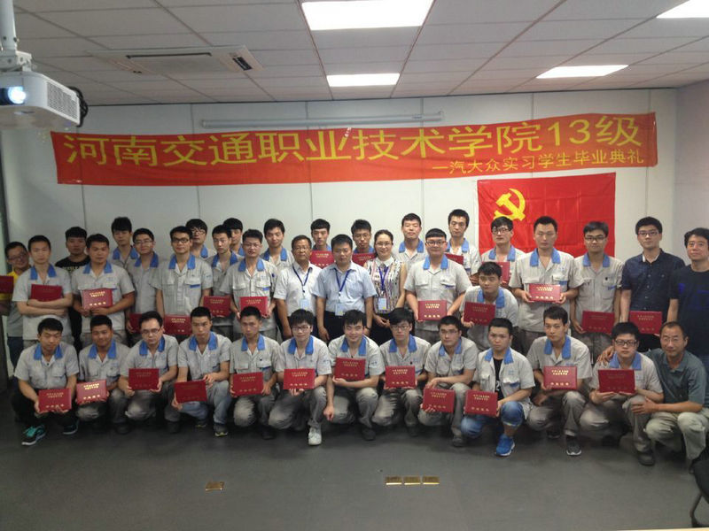 7月7日下午,汽车学院在长春为34名在长春-一汽大众实习的2016届毕业生举办毕业典礼。汽车学院党总支书记刘向杰赴长春参加典礼。