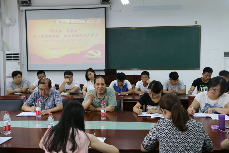 7月13日下午,商务旅游系党总支在系会议室召开以 “‘讲政治、有信念’做个党性观念强、信念坚定的共产党员”为主题的“四对照、四反思”组织生活会,会议由系副主任郭凤丽主持,学院党委副书记孙建立及全体教师党员、学生党员参加了本次会议。