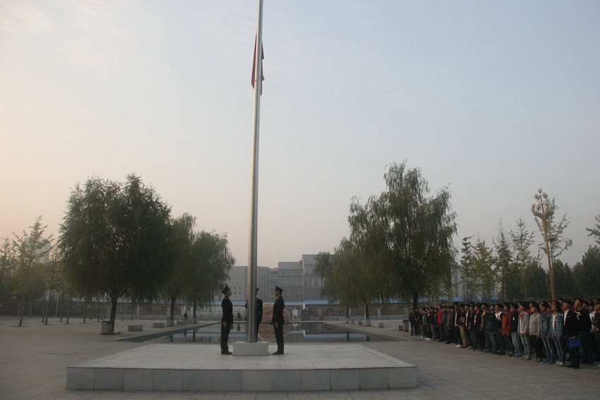 上午7时整,伴随着威武雄壮的国歌,鲜艳的五星红旗冉冉升起,全体师生集体行注目礼,士官生行军礼,现场气氛庄严肃穆。升旗仪式后,学生代表姜冰冰进行了发言,倡议同学们在校期间勤奋学习、立志成才,做一名无愧于自己、无愧于时代、无愧于祖国的当代大学生。随后赵运成老师向全体同学们强调了对大家在学习、生活中的各项纪律要求。