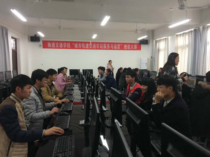 11月30日下午1点,"火灾自动报警系统运用与维护"、“城市轨道交通车站运营与服务”两项技能大赛在轨道交通学院举行。轨道交通学院领导到比赛现场观摩指导,两个项目约一百名选手同时开展竞赛,掀起了技能大赛的热潮。