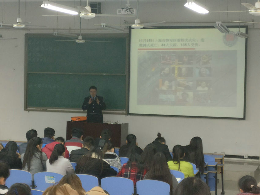 12月7日下午,商务旅游系邀请河南省消防协会李林峰教员在4A211教室为本系学生开展冬季消防安全知识讲座。会议由系副主任郭凤丽主持,商务旅游系一、二年级在校生约300余人聆听了本次报告。