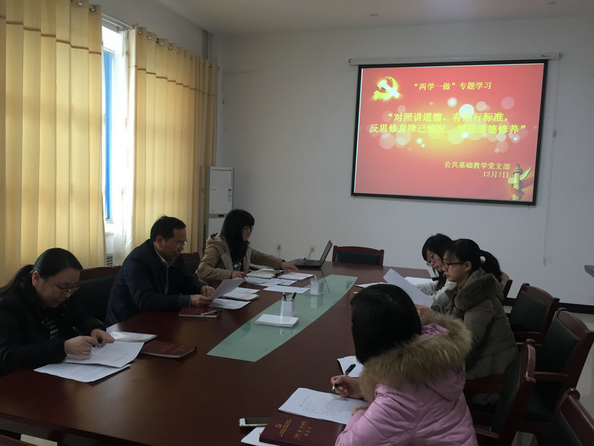 12月7日,基础教学党支部在新校区召开“两学一做”学习教育第三专题学习讨论会,全体党员参加了学习研讨。