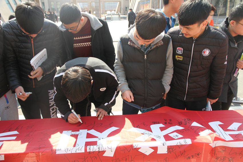3月13日中午,物流学院在教学楼及文化餐厅前成功举办“文明校园,远离手机”倡议签名活动。