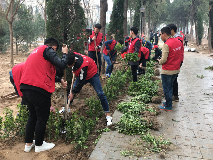 上午10点,志愿者队伍到达中牟县烈士陵园,大家整齐站立,庄严肃穆,在革命英雄纪念碑前默哀,向革命先烈敬献花圈并为烈士墓清除杂草。在得知园区改造人员不足的消息后,志愿者们二话没说撸起袖子,帮助园区进行绿化作业,献出了自己的一份力量,受到了园区管理人员的好评。