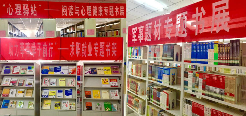 本次书展分为“军事题材”“心理驿站”、“助力莘莘学子前行”三大板块,共展出军事类、心理健康类、求职就业类图书两千余种。书展选取近年来知名学者撰写的经典书籍与广受好评的畅销图书,着眼于学生的专业需求与生活中普遍关心的问题,旨在激发读者的阅读热情、为学院广大读者的心理素质提高及毕业生就业提供广阔的思路经验。