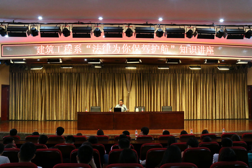 5月24日晚7:00至8:40,建筑工程系在图文中心二楼报告厅举行了由航海系党总支副书记赵书亚主讲的“法律知识为你保驾护航”的主题讲座。