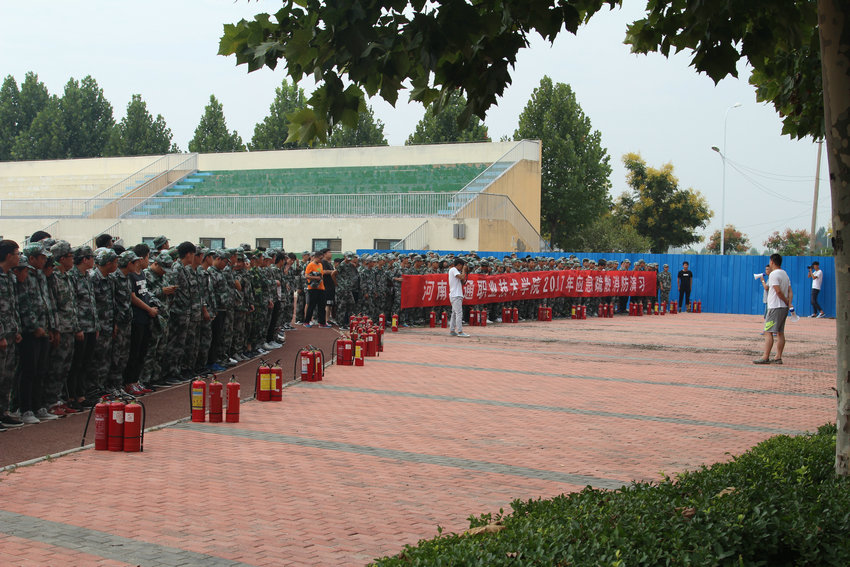 9月15日上午,学院保卫处联合河南省消防协会在新校区操场上,开展2017级新生消防知识培训暨紧急疏散消防演习。2017级全体新生参加了演习。