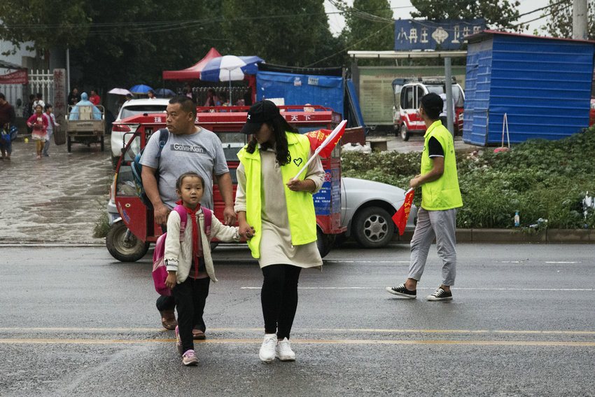 志愿者们头戴小红帽,身穿绿马甲,手持小红旗,成为连绵小雨中一道亮丽的风景线。遇到大批的小学生过马路时,志愿者们立即张开双臂,筑起一堵人墙,保护小朋友安全通过马路。志愿者们还对不文明停车行为进行了制止,让机动车和非机动车停靠在路边停车位上,保障了道路的畅通。在岗位上,志愿者用坚定的态度劝止不文明交通行为,用亲切与耐心守护行人安全过马路,他们的示范行为与礼貌服务也得到了过往行人和车辆的理解与配合。