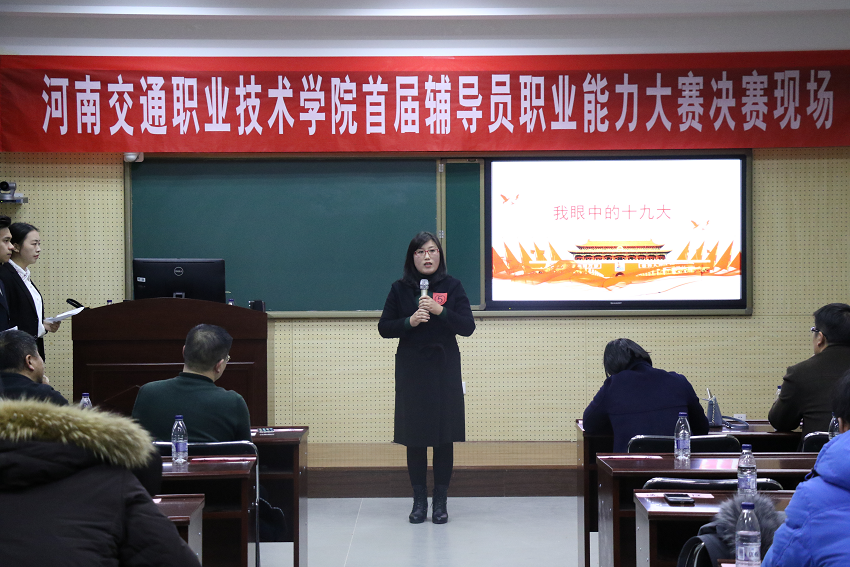 12月20日下午,学生工作处在新校区2A506举行首届辅导员职业能力大赛决赛。宣传部部长赵学峰、党政办主任李菡、思政部副主任刘喜要、学生工作处处长张震出席大赛并担任评委,全体一线辅导员观摩比赛。