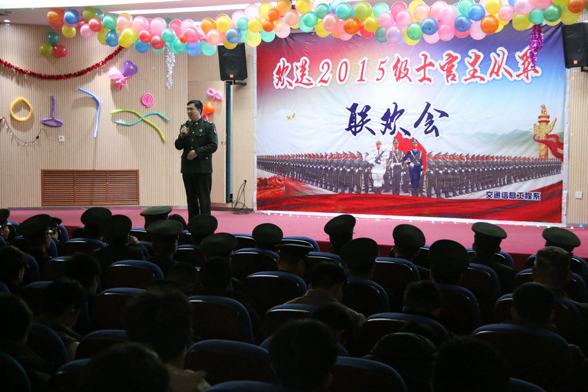 12月20日下午,交通信息工程系在系部礼堂为2017届定向培养直招火箭电子士官生举办入伍欢送仪式。学院副院长贺绍华、士官生大队教官刘德成、系党总支书记李莹、系主任田保慧及2015级火箭电子士官生全体师生参加了欢送会。