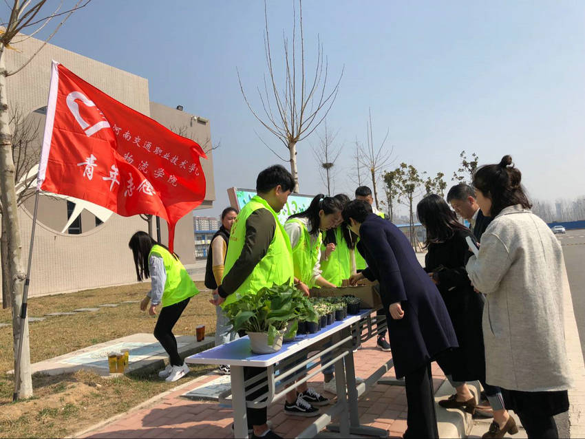 3月12日中午,物流学院青志部在二餐厅前举行绿植领养活动。该活动由院团委主办,物流学院承办,活动以“拥抱春天 播种绿色”为主题,旨在传递环保理念,鼓励大学生亲身参与绿色植物种植行动,积极唤醒大学生环保意识。