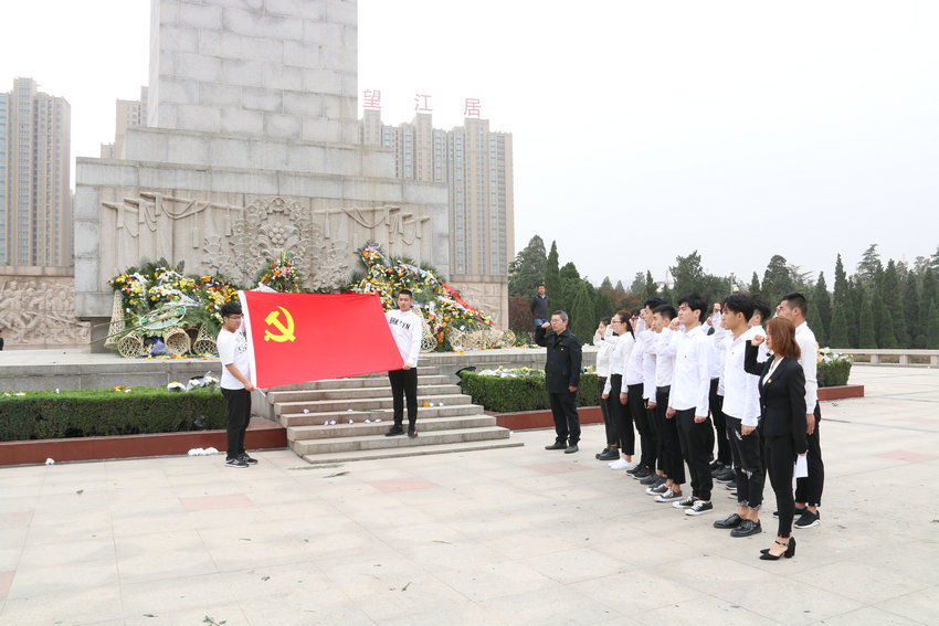 活动中,师生们手持白花,表情肃穆,面对庄严的革命先烈纪念碑,低头鞠躬向革命烈士静静默哀。为烈士们献上花篮,表达对革命先烈们的深切缅怀和崇高敬意。同时在革命先烈纪念碑前,在鲜红的党旗下,新入党的同学们也正式进行了入党宣誓仪式。