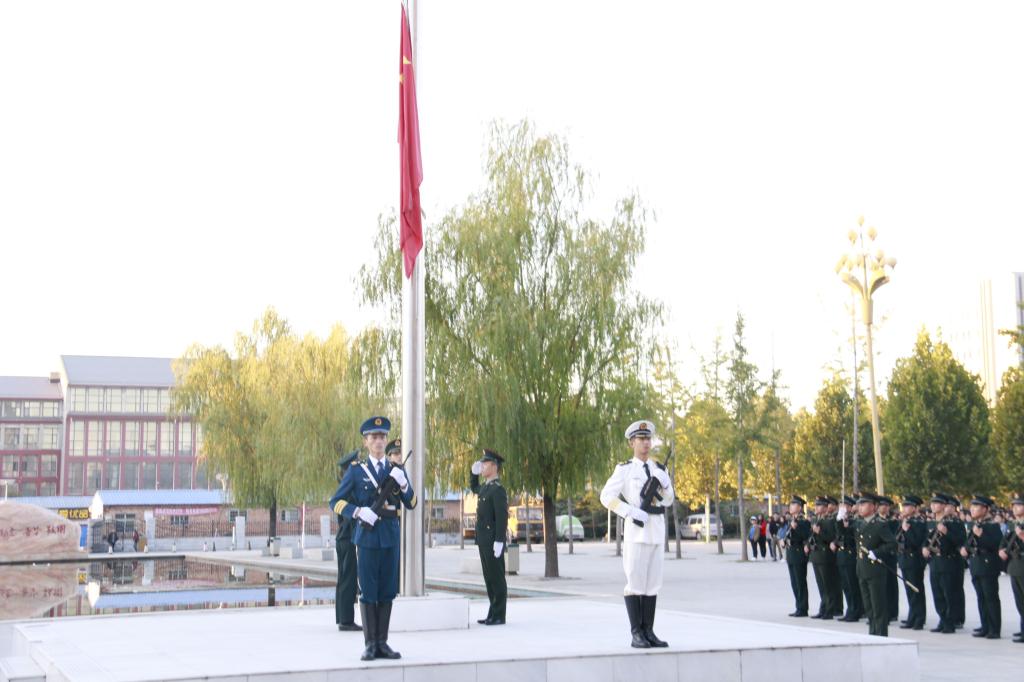 上午7时整,伴随着威武雄壮的国歌,鲜艳的五星红旗冉冉升起,全体师生集体行注目礼,士官生行军礼,现场气氛严肃。升旗仪式后,2018级新生代表栗梦圆进行现场发言,倡议同学们在校期间勤奋学习、立志成才,做一名无愧于自己、无愧于时代、无愧于祖国的当代大学生。随后老师赵运成向同学们强调了在校学习、生活中的各项纪律要求。