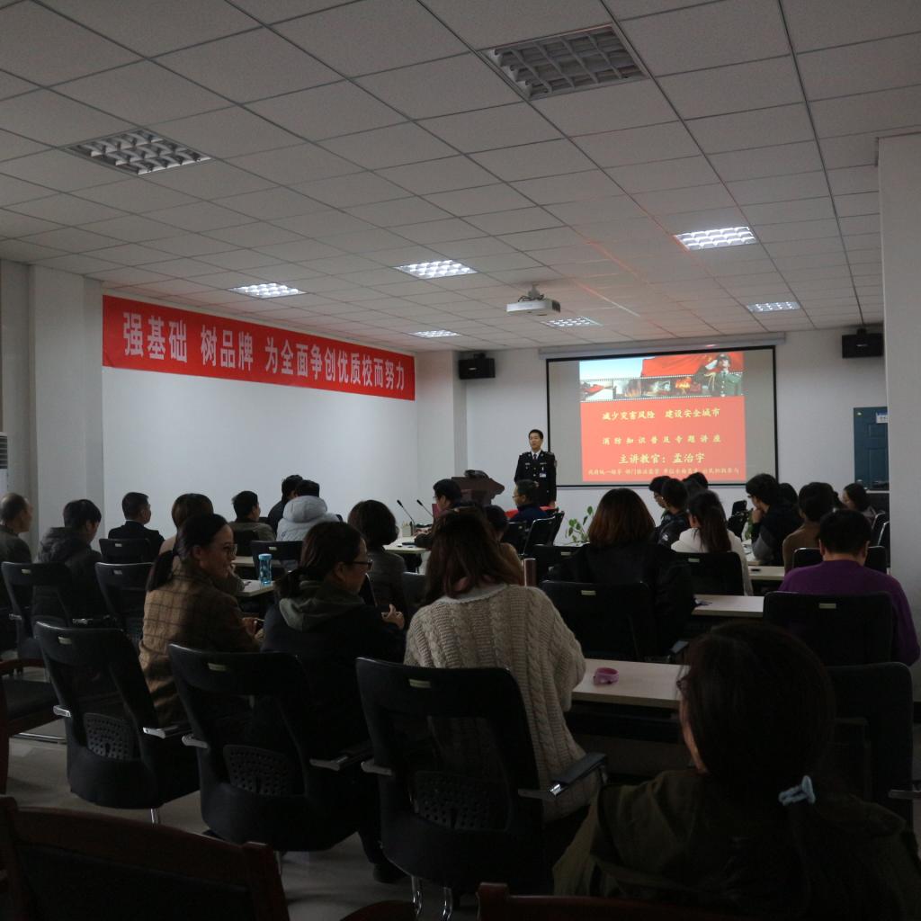讲座中,孟治宇从消防日常管理、日常安全防火常识、发生火灾如何正确报警、如何逃生自救、初期火灾如何扑救、火灾的应急处置、消防器材使用方法、逃生注意事项等方面进行了详细生动的讲解,并结合大量触目惊心的实例和现场照片、视频资料,展示了缺乏消防安全意识和消防知识的严重危害,使大家更深刻地认识到火灾的危害性;说明了提高防火安全意识的重要性,为全体教师普及了消防知识,提高了消防意识和能力。