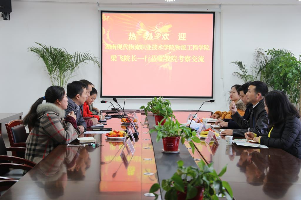 11月23日,湖南现代物流职业技术学院院长梁飞一行五人来到物流学院参观交流。物流学院党总支书记程晓栋、副院长赵梅接待了来访人员,双方就办学经验、教学改革、人才培养等方面进行了交流座谈,会议由程晓栋主持。