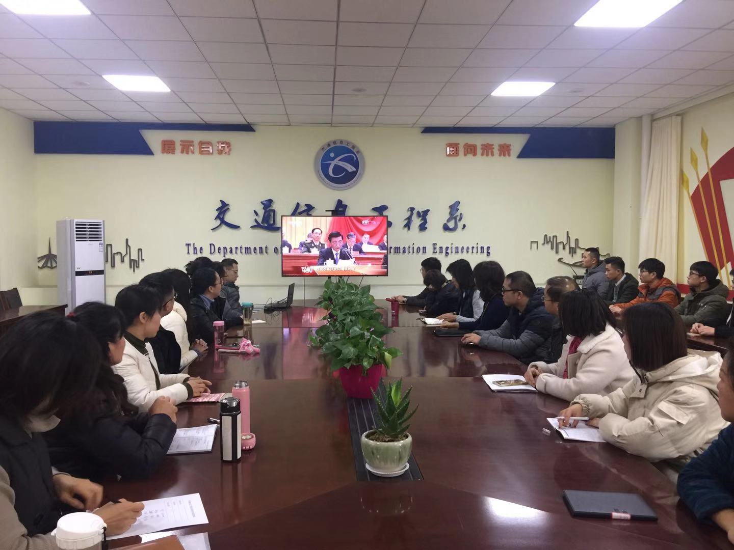 12月18日10点,交通信息工程系党总支在系会议室组织全体教职工收看庆祝改革开放40周年大会,认真学习领会习近平总书记在庆祝改革开放40周年大会上的重要讲话精神。