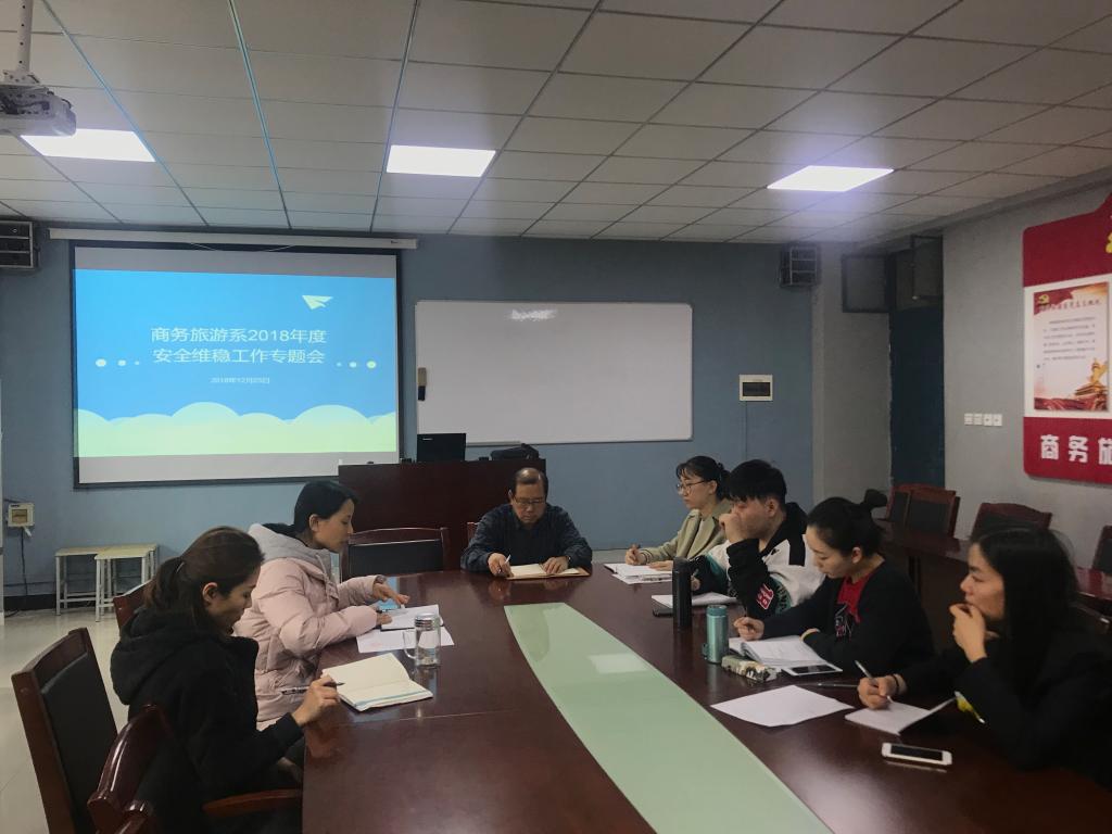 12月25日下午,商务旅游系在新校区召开安全稳定工作会议。商务旅游系主任陈振锋副主任郭凤丽、学管办张琛和各部门负责老师参加此次会议,会议由郭凤丽主持。