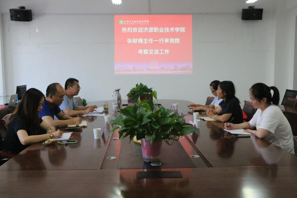 6月26日上午,济源职业技术学院建筑工程系主任张献梅一行三人到轨道交通学院考察交流工作。轨道交通学院党总支副书记闫洪林、副院长齐伟和轨道交通运营管理专业老师等接待了来访客人。