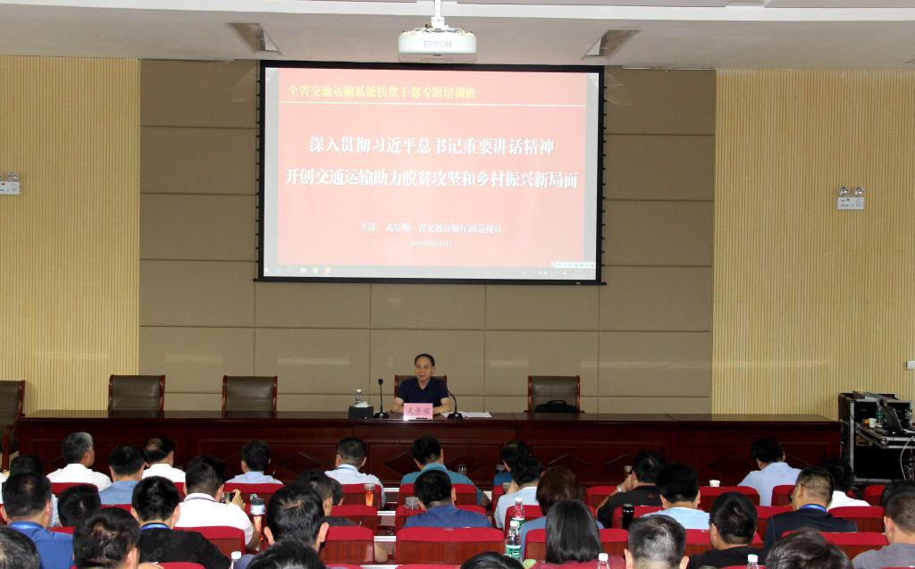 各省辖市交通运输局(委)、省直管县(市)交通运输局(委)分管领导和交通扶贫业务骨干,相关贫困县交通运输局分管局长,厅派驻村第一书记,厅公路局、省运管局,厅扶贫办等相关单位和部门的120余名学员参加培训。本次培训主要学习习近平总书记关于交通运输脱贫攻坚的重要讲话精神、综合交通立体规划编制、交通运输扶贫统计报表制度等相关内容。