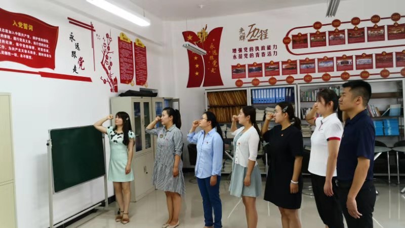随后,全体党员在赵宇的带领下重温了入党誓词,全体党员通过集体宣誓仪式,受到了党性教育,增强了党员意识,牢记了共产党员的政治责任和历史使命,激励了全体党员守初心、担使命,切实发挥共产党员的先锋模范作用,自觉用实际行动践行党的宗旨。