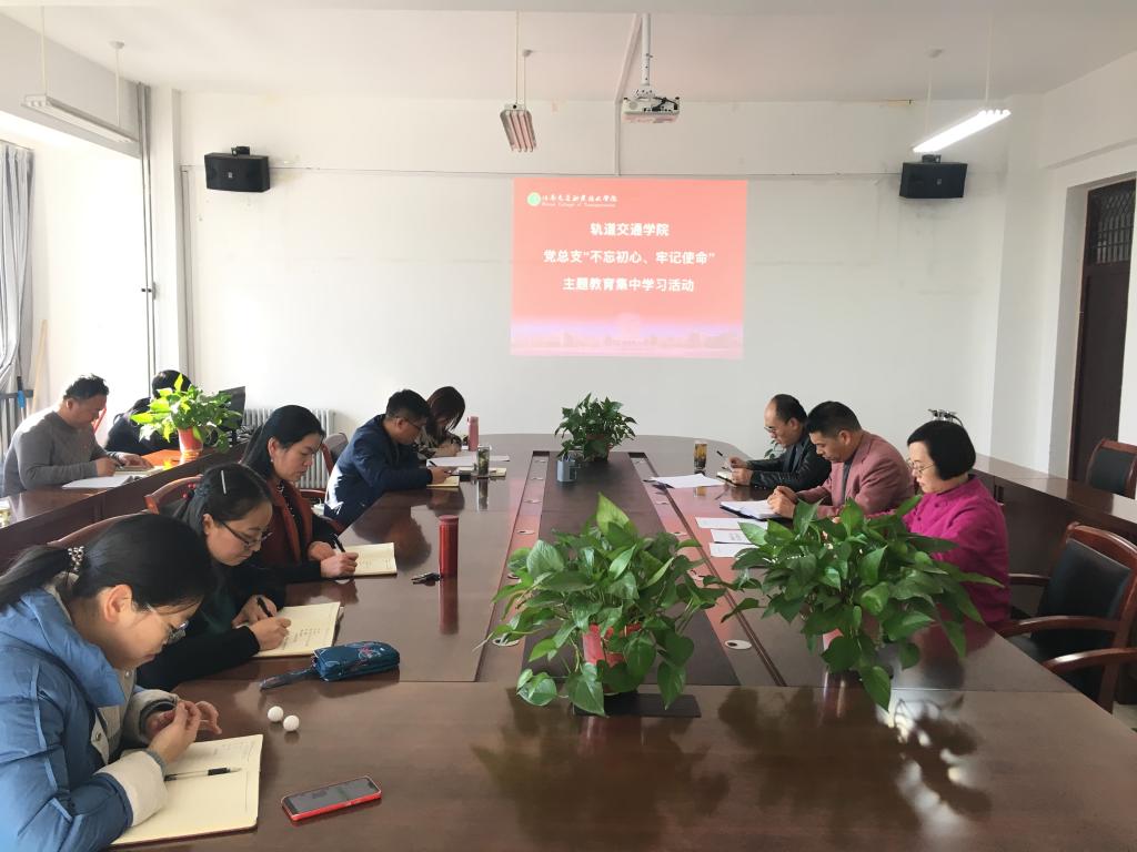 12月5日下午,轨道交通学院党总支召开“不忘初心、牢记使命”主题教育集中学习专题会议,全体党员参加,会议由轨道交通学院党总支书记熊瑛主持。