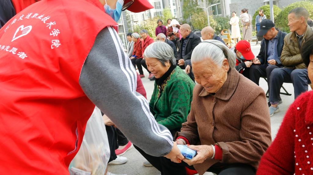 金秋十月,天高气爽,在“重阳节”佳节来临之际,10月24日上午,团委组织20余名青年志愿者带着牛奶、面包等慰问品赴小冉庄社区开展“感恩重阳,情满交院,关爱老年人”活动,邀请辖区老人欢聚一堂,共度重阳佳节。