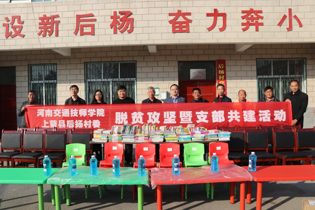 本次支部共建活动中,河南交通技师学院为后杨村图书室捐赠了一批图书和阅览桌椅等文化学习用品;同时,河南交通技师学院选派汽车工程系优秀党员师生为后杨村村民讲授了汽车日常维护、保养、交通安全等方面的专业知识,并为村民的车辆进行现场检查维护,这种技能培训深受村民好评。随后,张念立一行还深入结对帮扶贫困户家中慰问,为贫困户送去了慰问金和慰问品,了解他们的生活、生产情况和实际困难。