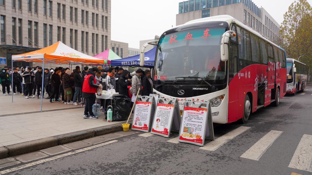 12月2日,校团委联合河南省红十字血液中心,在新校区扬帆广场开展了无偿献血活动。