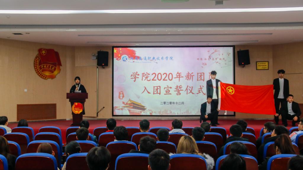 12月10日下午,学校2020年新团员入团宣誓仪式在交通信息工程系一楼礼堂庄严举行。