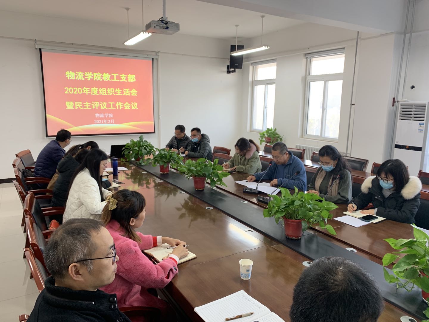 近日,物流学院教工党支部组织全体教师党员在6A202召开2020年度组织生活会暨民主评议工作会议。会议由教工党支部书记闫洪林主持。