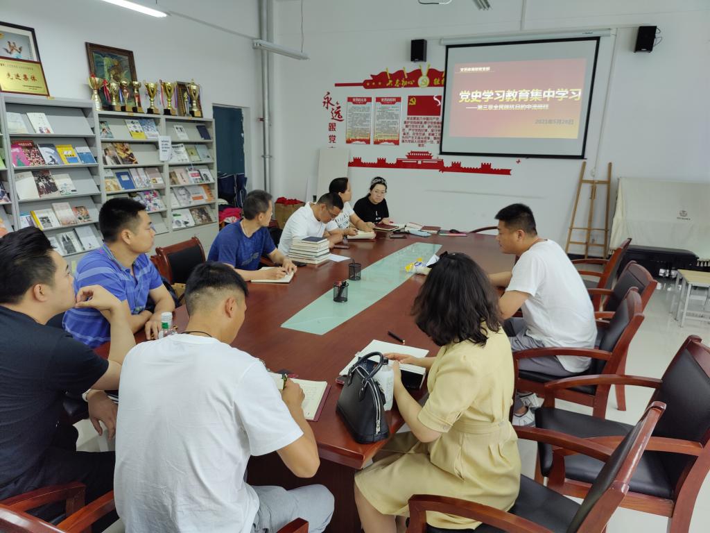 5月26日下午,文艺体育部党支部在新校区3A308会议室召开了党史学习教育专题会议。会议由党支部书记张焕主持,全体党员参加。