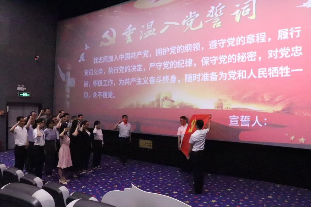 观看红色影片既是一次深刻的革命教育,更是一次触及灵魂的思想洗礼。观影之后,由支部书记张震领誓,新党员孟伟同志进行入党宣誓,全体党员重温入党誓词,铿锵有力的宣誓声体现了全体党员对党的赤胆忠心,激励党员不忘初心,时刻永葆党员的先进性本色。宣誓结束后,同志们纷纷表示,在今后的工作中要把党史学习和此次观影成果转化为工作动力,不断增强党性修养和践行初心使命,从学习党史中汲取智慧和力量,立足本职岗位认真工作,把共产党人的精神继承发扬下去。