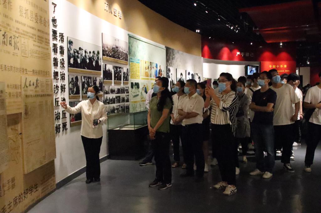 随后,大家在在讲解员的带领下走进焦裕禄纪念馆,仔细聆听焦裕禄同志生平事迹的介绍,认真观看展厅的展品和图片。一件件饱经风霜的物品,一幅幅珍贵的历史图片,一个个生动真实的影片录像,生动的再现了当年焦裕禄带领兰考人民战天斗地治理“三害”的震撼现场,再现了焦裕禄当年访贫问苦、心系群众的工作场景,也真实反映了焦裕禄同志艰苦奋斗、勤政为民的感人事迹,使大家深切感怀了焦裕禄同志的崇高品质、伟大精神。