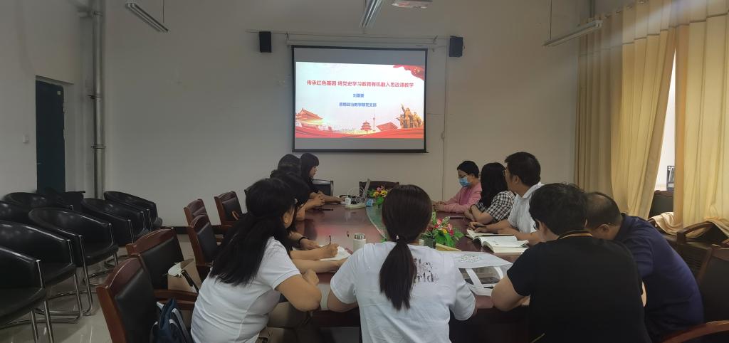 活动中,刘喜要首先以“传承红色基因、将党史学习教育有机融入思政课教学”为主题,为全体党员教师讲授了一次专题党课。刘喜要从习近平总书记关于思政课建设的重要论述出发,向大家梳理了开展党史学习教育的重要意义、党史学习教育融入思政课教学的路径和方法等内容。通过此次专题党课学习,大家对如何把党史学习教育的具体成果融入日常课堂教学中等一系列问题有了清晰明确的认知。