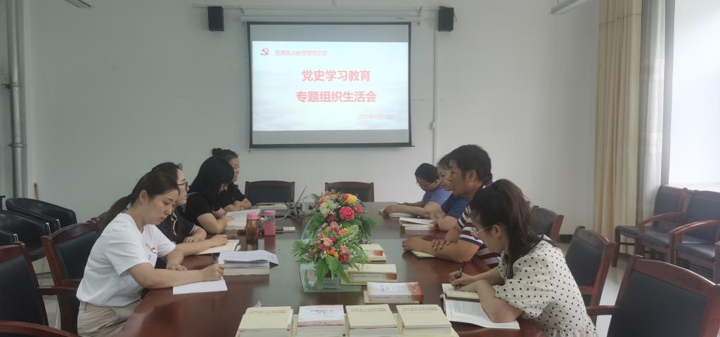 近日,思想政治教学部党支部在思政部会议室召开党史学习教育专题组织生活会。支部党员教师参加会议,会议由党支部书记刘喜要主持。