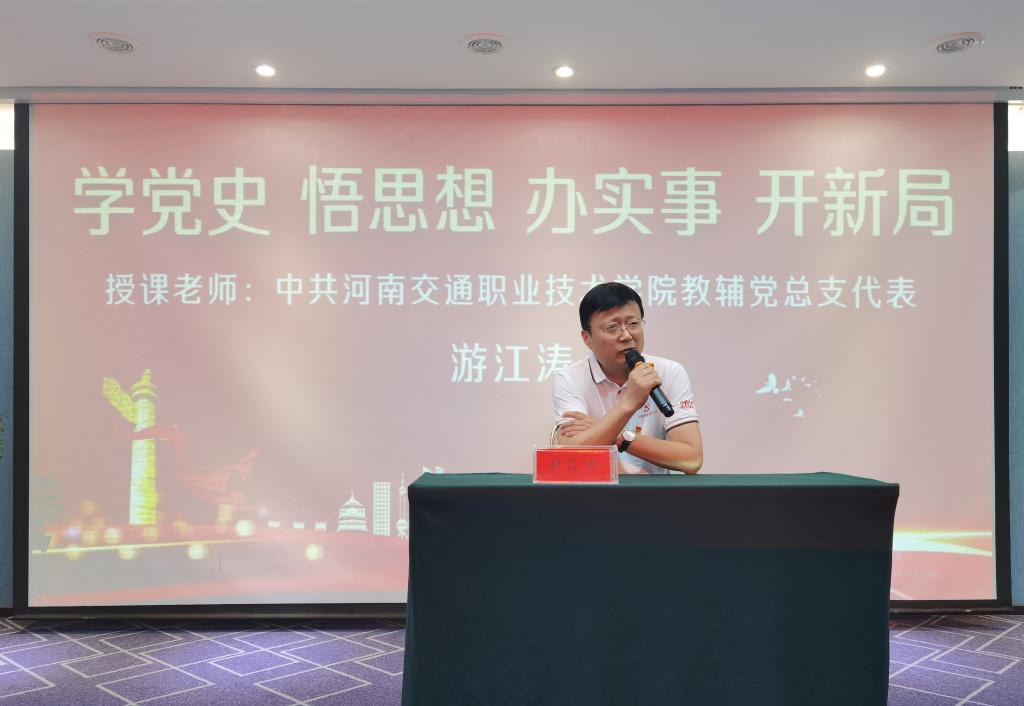 最后,教育培训中心主任游江涛讲了题为《学党史、悟思想、办实事、开新局》的党课,生动讲述了中国共产党的百年历程,从建党到党的快速发展,到南昌起义、秋收起义、湘江战役、遵义会议,再到红军长征、胜利会师、抗日战争、解放战争、社会主义建设、改革开放到社会主义新时代等,涌现出的许许多多的感人事迹,有背景有故事,有人物有诗词,把大家带入了不同的年代,从一首首诗词中让我们感受到不同时代伟人们的心境和时代背景。党课结束后,现场响起了热烈的掌声,大家还意犹未尽。通过此次学习让大家对党的百年历史,尤其是新民主主义革命时期的历史有了更深刻的认识。