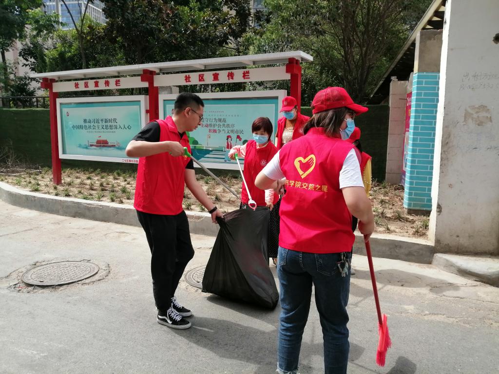 群众有需求,志愿者有行动。身穿“汽车学院交院之星”红马甲的志愿者们克服天气炎热等不利因素,发扬不怕苦不怕累精神,对小区内乱堆乱放的垃圾杂物、生活废弃垃圾进行清理。在环境卫生整治过程的同时,志愿者们还积极向居民宣传《郑州市文明行为促进条例》,推动创建工作融入日常,让大家深入了解创建工作的重要性。端午节,志愿者与社区老人共聚万达社区活动室,包粽子、唠家常、论端午,和他们一起分享节日的喜悦。