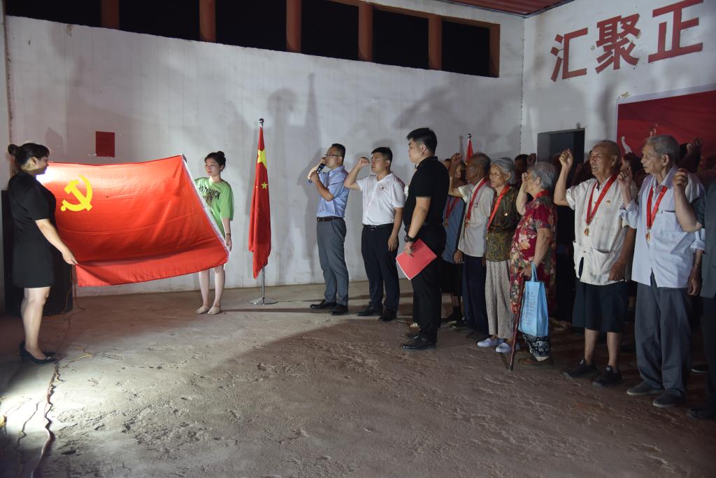 百年峥嵘岁月,恰是风华正茂。为学习好、宣传好、传承好党的优良传统,汇演开始前举行了庄重的“光荣在党50年”纪念章颁发仪式,与会相关领导为后杨村10名50年以上党龄的老党员颁发纪念章,向他们致以崇高敬意和热烈祝贺。随后,在驻村第一书记刘甲玉的领誓下,全村70名党员重温入党誓词,用铮铮誓言体现了新时代共产党员的责任与担当。