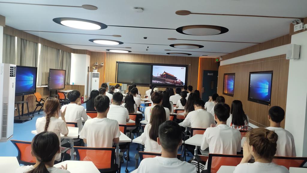 7月1日上午,商务旅游系党总支组织教职工和学生党员,在善学楼五楼智慧教室,集中收看中国共产党成立100周年庆祝大会直播,共同追忆中国共产党为使命而生、循初心而行,引领中华民族迈向伟大复兴的伟大历程,共同祝福党的百年华诞!祝福伟大的祖国!