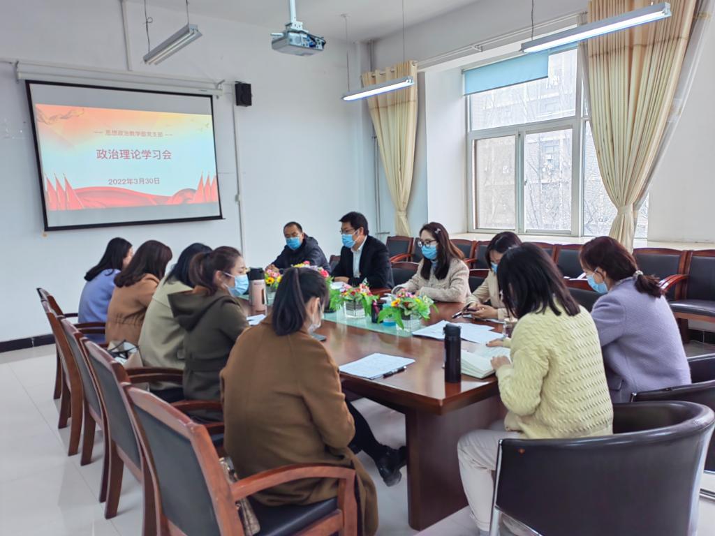 近日,思想政治教学部党支部在马克思主义学院会议室召开政治理论学习会。党支部全体党员参加会议,会议由党支部书记刘喜要主持。