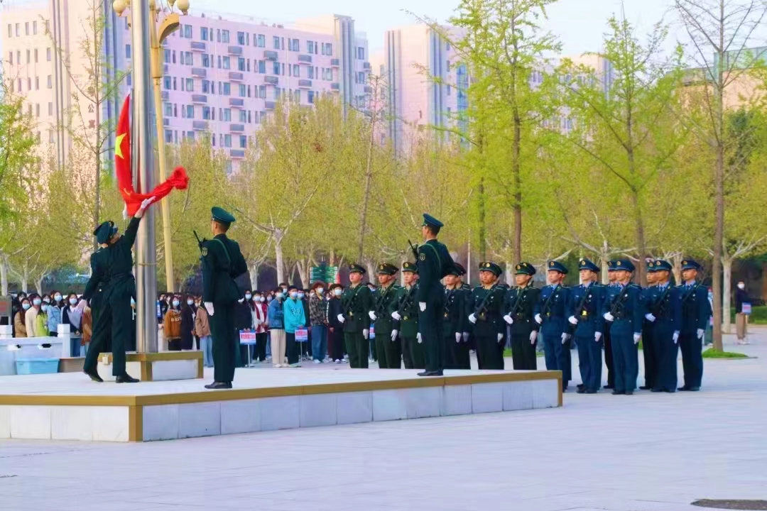 英姿飒爽的国旗队护卫队,迎着徐徐微风,迈着矫健整齐的步伐,护卫着五星红旗走向升旗台。当庄严激昂的国歌响起时,国旗手振臂一挥,鲜艳的五星红旗冉冉升起。全体师生面向国旗肃立敬礼,表达对伟大祖国的无限热爱。