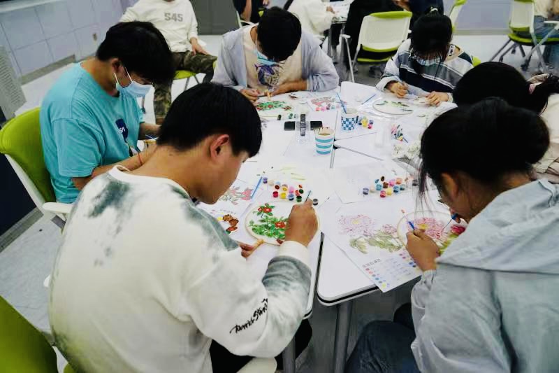 在手绘活动中,同学们发挥天马行空的想象,用心涂抹色彩,将身心完全放松,全心投入手绘中,用心雕琢自己的作品,挑一把扇子,配几种颜色,勾勒心中畅想,不仅让色彩与扇面交融晕染,还给平淡的生活添了一抹色彩。