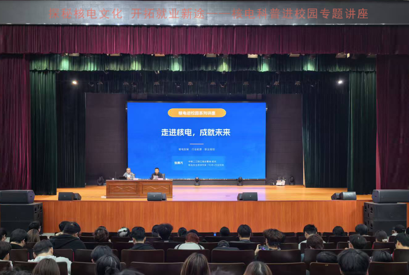 张泰方在讲座中对公众常见的核电认知误区进行科学纠偏,帮助学生以客观、专业的视角重新认识核电产业,并全面梳理全球核电发展趋势,重点解读了我国核电四代技术的突破性进展,结合经典案例,阐释国家核电“安全第一、质量至上”的发展理念与核心准则,深化师生对核电安全的深度认知。张泰方还围绕国家政策、市场需求、产业链布局等方面,详细介绍了核电上下游产业的广阔空间,明确了沿海、内陆核电项目的地域布局与人才缺口;梳理了与机电、电气、质检、安全技术、焊接等岗位适配的专业清单;分析了岗位晋升路径,让学子们清晰看到自身专业与核电行业的对接方向。