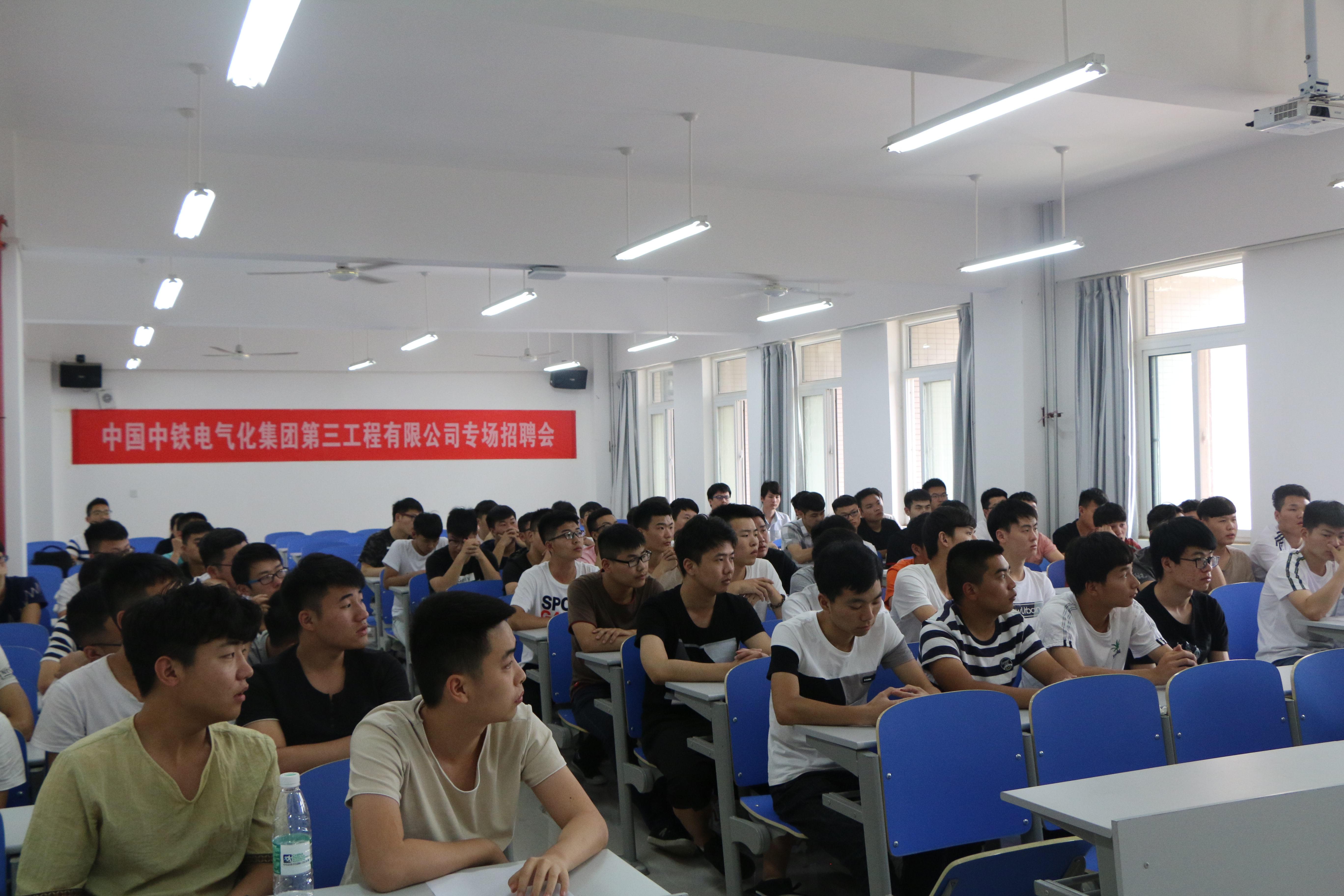 5月30日下午,中铁电气化集团第三工程有限公司到我院举行专场招聘会。轨道交通学院院长宋全有、党总支副书记闫洪林组织安排了本场招聘会。