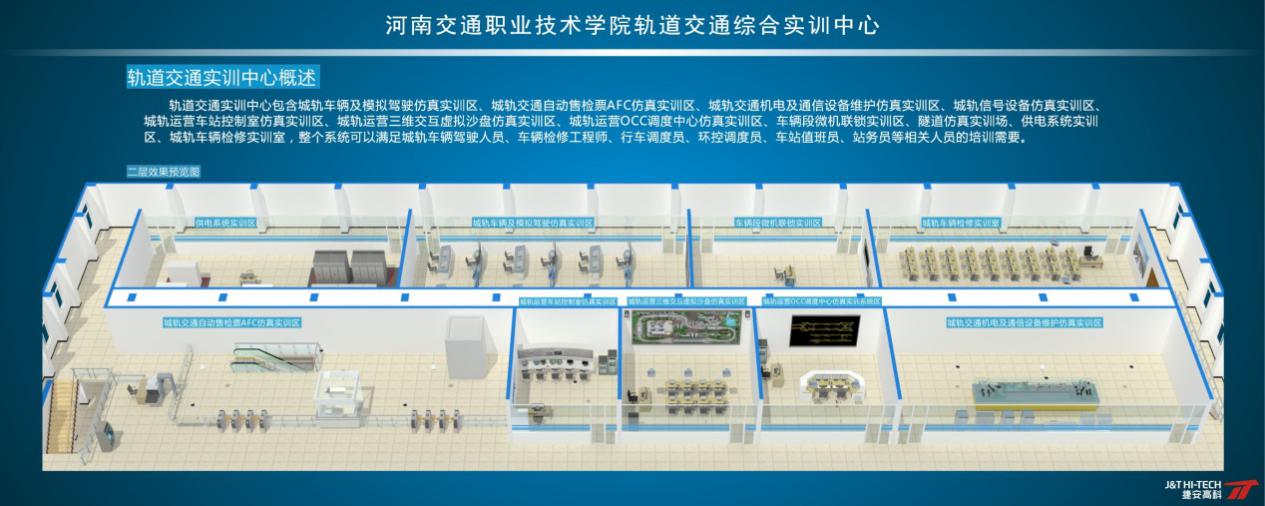 轨道交通实训中心包含城轨车辆及模拟驾驶仿真实训区,城轨交通自动售检票AFC仿真实训区,城轨交通机电及通信设备维护仿真实训区,城轨信号仿真实训区,城轨运营车站控制仿真实训区,城轨运营三维交互模拟沙盘仿真实训区,城轨运营OCC调度中心仿真实训区,车辆段微机联锁实训区,隧道仿真实训场,供电系统实训区,城轨车辆检修实训室,整个系统可以满足城轨车辆驾驶人员,车辆检修工程师,行车调度员,环控员,站务员等相关人员的培训需要。