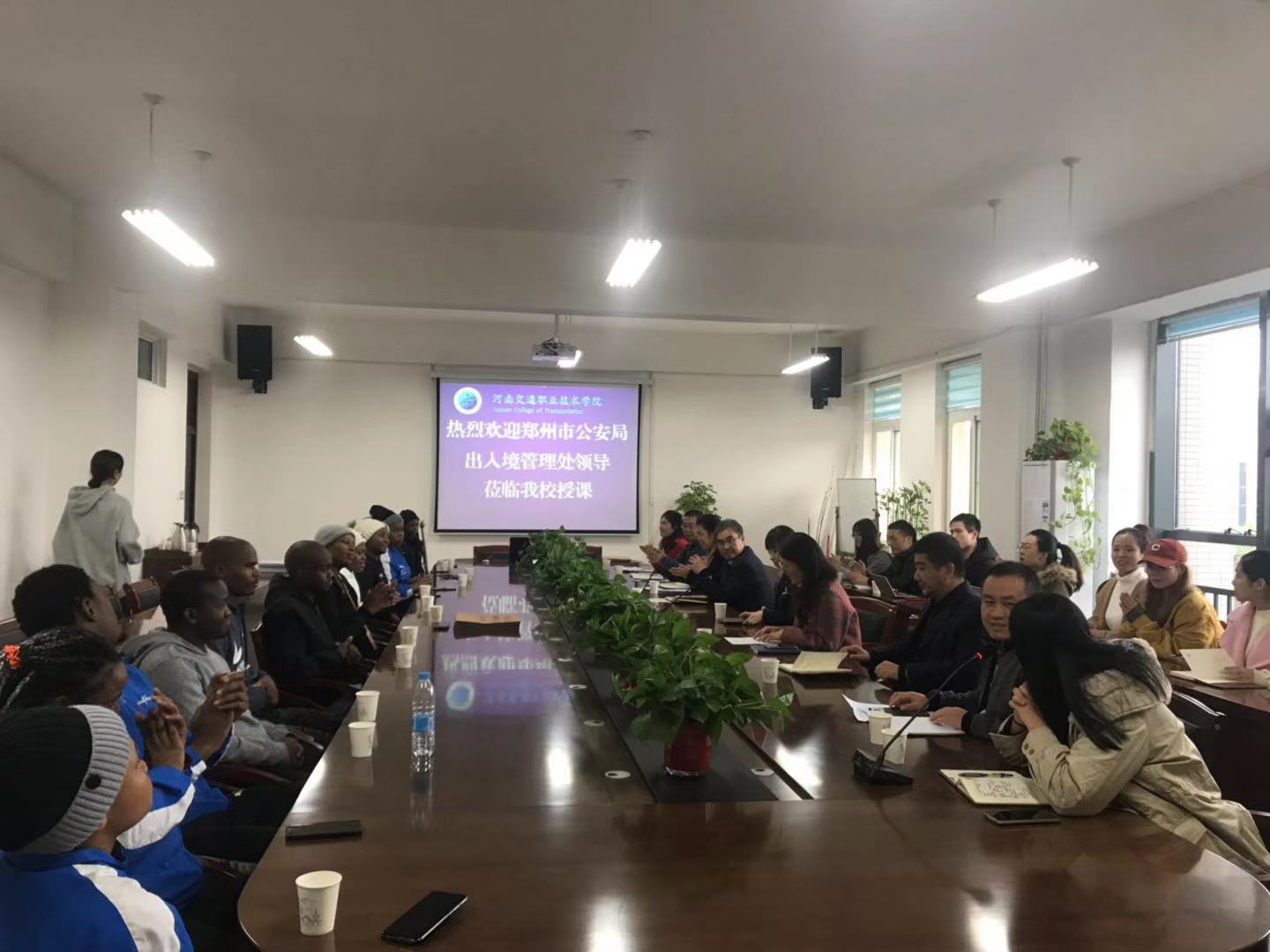 11月20日下午,学院在物流学院会议室顺利召开国际留学生管理工作培训会。郑州市公安局出入境管理处指导员钟丹、学院副院长夏连学出席会议,学生工作处、科研外事处、物流学院、汽车学院相关负责同志参加会议。会议由科研外事处处长王玮主持。