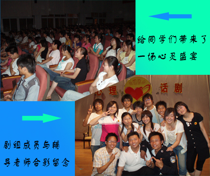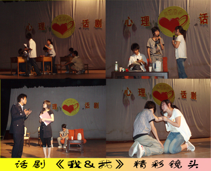 由心理健康教育中心主办的本次宣传月的压轴大戏,大型青春心理话剧《我和“我”》经过3个月精心准备于5月30日晚19:45在学院艺术中心首映,获得巨大成功,将心理宣传月推向又一个高潮。