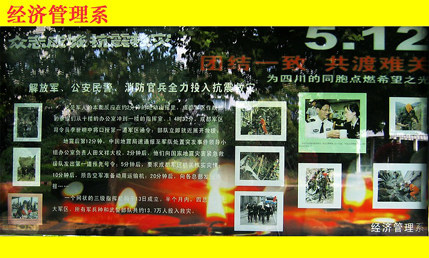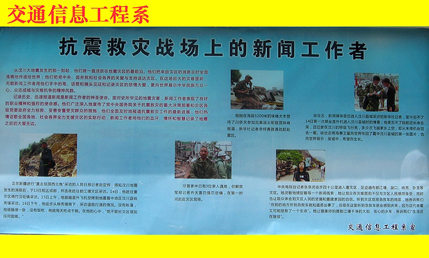 根据省教育厅和团省委有关件精神,我院深入开展汶川大地震抗震救灾英模人物宣传活动。我院通过宣传栏、黑板报、广播站、校园网等多种宣传途径,在广大师生中大力宣传抗震救灾英雄人物的感人事迹,掀起了我院广大师生向英模人物学习的高潮。