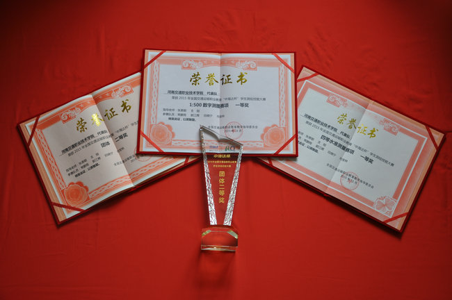 本次大赛是由全国交通运输职业教育教学指导委员会主办,学院代表队由公路学院的支刚、张恩朝两位教师和常鹏程、田晓宁、向宝林、郭江辉四位同学组成。比赛中,在两位老师的指导下,四位参赛同学凭借扎实的基本功和过硬的心理素质,沉着冷静、全力以赴,一举夺得了三个单项奖中的“四等水准测量”、“1:500数字绘图”两个一等奖,团体总分位居45个代表队(含8个中职代表队)第四名,取得了骄人佳绩,为我院争得了荣誉。
